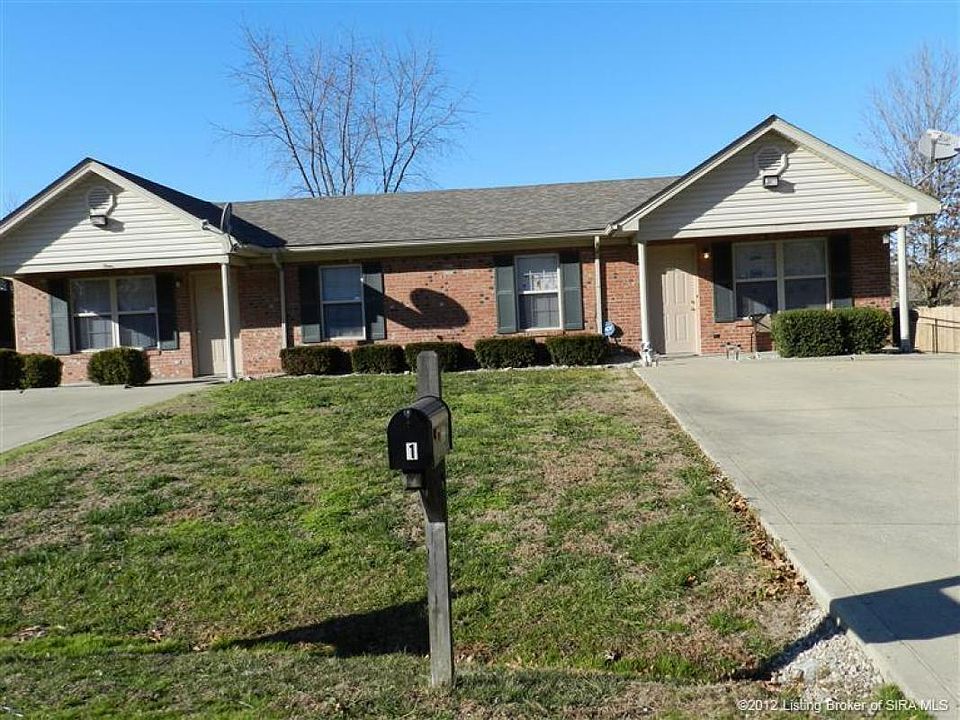 Motivated seller! Built in 2000 this all brick duplex has over 800 square feet in each 2 bedroom, 1 bath unit. Open floor plan is ideal for the person who wants to live in one unit and have the other help make the mortgage payment. Building has new 3 dimensional shingle roof and gutters, yard with new privacy fencing, both units with new water heaters and HVAC. Unit #1 has new dishwasher and refrigerator. Both units rent for $595 each. Unit #1 is leased til Feb 2012 and unit #2 til Oct 2012. Rm sizes and sq. ftg. approx. Owner would consider trade for home in Sellersburg preferrably Rental type.