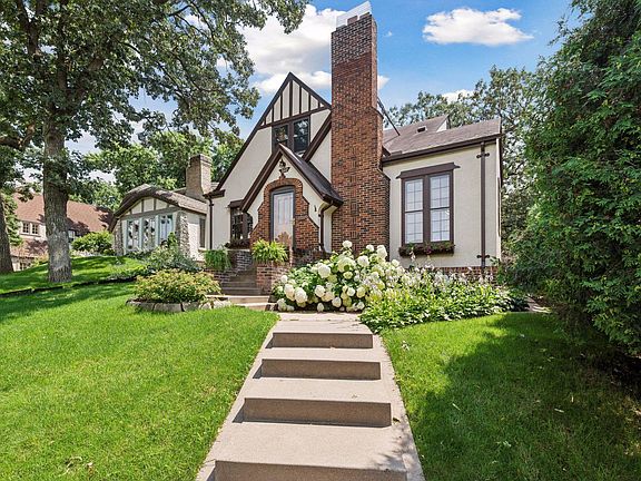 Nestled in the sought-after Tangletown neighborhood of South Minneapolis, this charming 1930s residence beautifully blends classic character with modern convenience. Perfectly positioned just blocks from the vibrant 50th & Bryant area, and close to the bustling scenes on Lyndale and Nicollet Avenue, this home offers easy access to specialty shops, dining, city lakes, and Minnehaha Creek trails. Experience the timeless elegance of vintage woodwork, cove ceilings, and an original brick fireplace that define the home's historic charm. Oversized French windows fill the space with natural light, highlighting the oak floors and unique architectural details throughout. Main Level: Spacious living room perfect for relaxing or entertaining. Formal dining room featuring built-in corner cabinets. Updated kitchen with maple cabinetry, granite countertops, and stainless steel appliances, plus an informal dining nook overlooking a delightful patio and gardens. Two generous bedrooms and a charming vintage bathroom complete this floor. Upper Level: Two additional bedrooms and another full bathroom, offering ample space and privacy. Lower Level: Bright and open with high ceilings and oversized windows, providing a versatile space ideal for a variety of uses. Recent updates include fresh paint, new carpet, specialty lighting, and new central air. Outdoor Space: Enjoy a low-maintenance yard adorned with perennials, and take in the amazing view and seasonal glimpses of the Minneapolis skyline from one of the highest points in the city. This inviting home perfectly balances historic charm with modern updates, offering a unique opportunity in a prime location. Don’t miss this opportunity