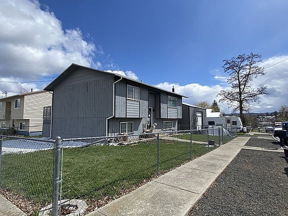 Large fenced corner lot with a single family home. 2 bedrooms and a bathroom on each level. This home offers a large upstairs living room with natural light all day and a generous size family room downstairs. The large garage/shop was built in 2015 and has a workroom downstairs and a big storage area accessible from the deck upstairs. Plenty of parking off street. The back yard has mature pear and plum trees within a privacy fence that produce delicious fruit. The front yard chain link fence surrounds the home.