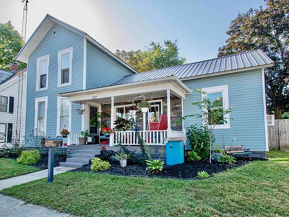 Welcome to 327 W. Spring Street; this two-story historical home combines timeless character with modern updates and a truly rustic backyard oasis. It features a newer 4-year-old metal roof, a covered front and rear porch perfect for morning coffee or evening relaxation, a multiple-entry basement with beautifully landscaped grounds. Inside, the bright and inviting kitchen blends rustic and contemporary style with concrete countertops, floating shelves, a deep farmhouse sink, stainless-steel appliances, and warm reclaimed-wood accents that flow throughout the home. A cozy breakfast bar opens to the living space, enhanced by abundant natural light and stylish pendant lighting. Outdoors, the expansive backyard is designed for entertaining and relaxation, complete with a large paver patio, fire pit, outdoor dining space, wood-burning feature, and plenty of mature trees for privacy. Full of unique charm and move-in-ready appeal, this one-of-a-kind property offers the perfect blend of history, comfort, and a welcoming retreat.