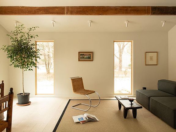 A serene landscape is seen through the glass wall of the Great Room at 327 Water Street Road. A large lawn sprawls in front of you, then dips down to give way to the Claverack Creek. Beyond the creek the bank rises again, a wall of pine forest. A landscape unique to the historic Glenco Mills neighborhood just ten minutes south of the heartbeat of the Hudson Valley, the quaint city'' of Hudson, New York. Originally built c1920, Water Street Road has been beautifully restored by the current owner, a designer and tastemaker by trade. That is evidenced in the details here walls the perfect, indiscernible shade of white, nuanced lighting and custom woodwork. The epicenter of the first floor is the vaulted Great Room, with its wall of glass and decorative beams. The kitchen is sleek but inviting with its large center island and warm grey countertops. The room is expansive, a place you can spend all day, with room for big, comfy seating and a long kitchen table. A formal sitting room lies at the front of the house, you'll pass a powder room with Waterworks hardware and a mudroom on the way there. A master suite completes the first floor, its large bathroom has a double vanity and extra wide shower, and a walk in closet. Upstairs there are two bedrooms and a sizable office that could be used as additional sleeping quarters. They share a beautiful, large bathroom with handpainted blue tile, a giant soaking tub and a separate shower. Outside, perched above the creek, the current owners have added a heated saltwater plunge pool. The HVAC has all been updated, the roof is a standing seam metal. 10m to Amtrak and 2.5h to NYC.