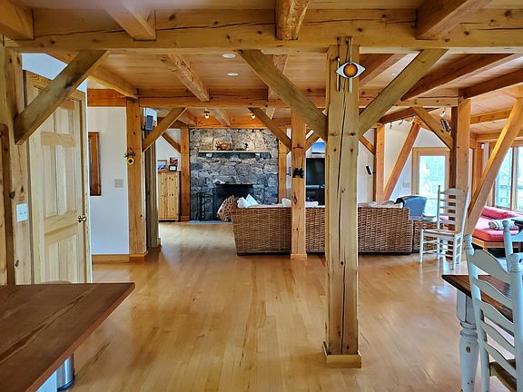 Very nice Timber Frame residential or vacation home located on 10.44 acres with 75' of Lake Champlain frontage. The post & beam construction features a large open space on the main level containing Living area with a stone fireplace, Dining and Kitchen space opening on a large deck lakeside. There are 2 bedrooms and a large full bath on the 2nd floor. The walk-out basement also has 1 bedroom, den and a full bath as well as the laundry and a utility room. Added bonuses are the large 30 x 60 barn and about 9 acres of open meadow which would make a good home for your horses or whatever.