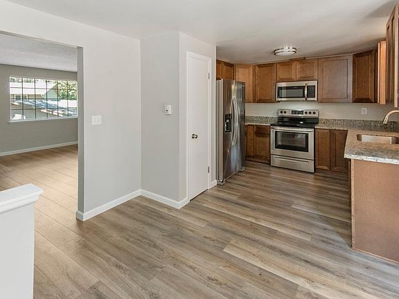 New from the Sheetrock out- texture, paint, cabinets, granite counters, stainless appliances, heaters, wood flooring throughout every room (no carpet), windows, new covered deck, fenced yard, close to freeways, in unit laundry room (owner does not supply W&D)
