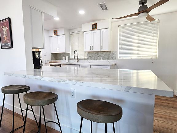 Amazing remodeled condo with breathtaking views of Camelback Mountain. FURNISHED 2 bed, 2 bath home includes AC and heating, water and trash. The condo is a quiet oasis from a big city. The condo was redesigned with an open kitchen (with breakfast bar) and refinished bathrooms .Tile flooring throughout. It has 2 balconies and 2 covered parking spaces. Full size washer/dryer. Close to The Biltmore, with many upscale restaurants in the area. It has easy access to hiking and biking. We are looking for a high credit score. This luxuriously completely remodeled in 2022 furnished, midcentury home is conveniently located in the Biltmore/Arcadia corridor. It has beautiful views of Camelback Mountain, and the green courtyard with a swimming pool. Unit has new stainless-steel appliances, including a microwave oven, quartz countertops, an in unit full size washer and dryer, and a fully equipped kitchen in which to spaciously prepare your favorite dishes. Attractive, porcelain easy to keep clean flooring throughout. There is a huge walk-in closet in the master bedroom for your wardrobe. Utilities: AC, heat, water, trash also are included in the rent. It's hard to beat the location for its proximity to recreational opportunities, upscale shopping, and the wide range of dining choices. It is a second-floor exterior staircase walk-up set far enough back from the road to be very peaceful. Attention real estate agents Do not contact. Additional information FURNISHED Looking for a high credit score No smoking or vaping, no lifeguard on duty at pool Second floor of two-story building with exterior staircase, no elevator Move in fee $150 No subletting permitted Utilities included are: electric, water, trash, landscaping, pool maintenance, heat, and a/c lease duration minimum 3 months.