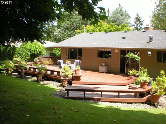 Inviting SW Eugene home in desirable Crest Drive area on a 1/2 acre lot! Large picture windows & brick walled fireplace in living room. Kitchen with cooktop, built-in oven and slider to deck. Master on main level with huge walk-in closet. Family/theater room w/fireplace on lower level plus 2 bdrms & bath for great separation of space. Nicely manicured front yard and private level backyard with huge deck & sitting benches; level parking.