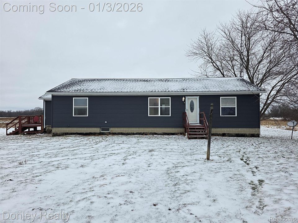 This move-in-ready 1999 modular home offers comfortable living with room to grow, all set on 4.60 open acres. The home features 3 bedrooms and 2 full bathrooms, providing a practical and welcoming layout. A full basement is ready to be finished, giving you the opportunity to add even more square footage and customize the space to your needs. Outside, the open acreage offers endless possibilities. There is plenty of room to build a pole barn or add an attached garage to the home. Whether you’re looking for peaceful country living, ample space to roam, or future expansion opportunities, this property combines solid construction with flexibility and potential. The home has been freshly painted, and new carpet throughout, and electrical has been updated. Schedule your showing today and see everything this property has to offer!