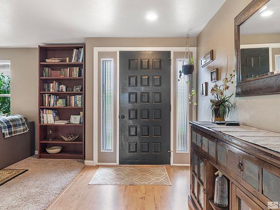 Welcome to this charming ranch-style home nestled on almost an acre of land in the serene community of Golden Valley. Boasting a thoughtfully designed floor plan, this 3-bedroom, 2-bathroom residence offers comfort, convenience, and a touch of rustic elegance. As you step inside, you'll be greeted by an inviting living room adorned, with a welcoming atmosphere. The layout seamlessly connects the living space with the adjacent dining area, featuring a convenient breakfast bar, perfect for enjoying quick meal, Central Air was added to the home a few years ago along with RV hook ups and a water softening system. The kitchen, equipped with ample cabinetry, a garden window and a pantry for all your storage needs. Retreat to the primary bedroom, a peaceful haven boasting an ensuite bathroom for added privacy. Two additional well-appointed bedrooms offer flexibility for a growing family, a home office, or guest accommodations. The second bathroom features updated fixtures and finishes, providing both convenience and style. Step outside to the expansive backyard, where you'll find ample space for outdoor activities on the nearly one-acre lot. The large lot also presents endless possibilities for customization, whether you want to create a garden oasis, set up a play area, or even accommodate equestrian facilities, as this property is thoughtfully zoned for horses. Embrace the outdoor lifestyle with nearby trails for hiking and biking, or simply relax and soak in the stunning Nevada sunsets from the comfort of your own backyard. Conveniently located, this property offers easy access to local amenities, including shopping, dining, and schools. With its proximity to the nearby city of Reno, you can enjoy a peaceful rural lifestyle while still being within reach of urban conveniences. Don't miss this exceptional opportunity to own a beautiful ranch-style home on almost an acre of land, zoned for horses, in the desirable community of Golden Valley. Schedule your private tour today and discover the endless possibilities this property has to offer!
