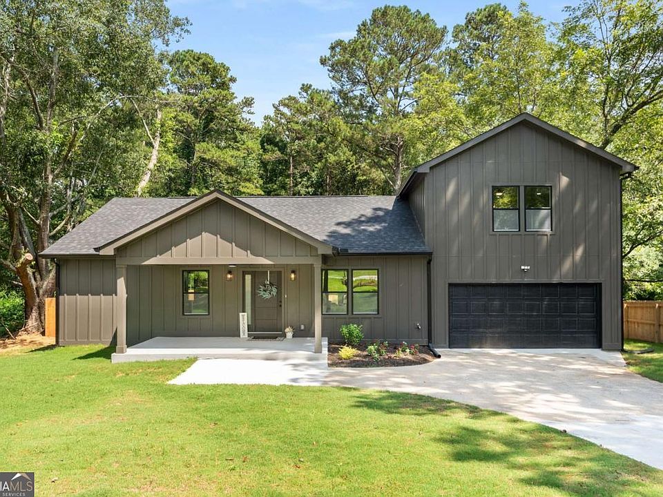 Dreaming of summer nights by the pool and a home that's brand new from top to bottom? This newly built 4-bedroom, 3-bath home in Douglasville sits on over half an acre and delivers the perfect blend of modern design, space, and functionality. From the moment you arrive, the crisp board and batten siding and professionally landscaped yard set the tone for what's inside. Step through the front door to find a spacious open-concept layout that flows effortlessly from the living room to the dining area and into a sleek, modern kitchen. With stylish finishes, stainless steel appliances, and plenty of room to gather, it's built for both daily living and entertaining. Upstairs features a kitchenette, offering ideal flexibility for multi-generational living, guest accommodations, or rental potential. Whether you need space for in-laws, a teen suite, an Airbnb setup, or a Home Office, this home is ready. The private backyard is the ultimate retreat, with a pool as the highlight, surrounded by lush landscaping and a newly built wood privacy fence. Grill out, lounge poolside, or host unforgettable gatherings in a space made for making memories. The two-car garage provides ample storage and convenience, and every detail in this home was carefully crafted with comfort and lifestyle in mind. Located just minutes from shopping, dining, parks, and major highways, this is a rare opportunity to own a move-in-ready new construction home in Douglasville.