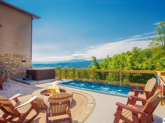This Smoky Mountain Lodge is a custom built second home or primary residence located in The Summit on Bluff Mountain; the most prestigious development in the Great Smoky Mountains! Oversized lot at 5.17 acres adjoining a nature preserve. This property just got better! With an additional outdoor living area with a huge swim spa, gathering area that has spectacular totally unobstructed panoramic views of the Smoky Mountains! You will not be disappointed in this spacious open floor plan with over 8,000 Sq ft, 6 bedrooms, and 5.5 baths. Well appointed, opulent gourmet kitchen, granite counters, stainless appliances, tailor crafted cabinets, handmade custom built furniture throughout, custom lighting, tongue and groove ceilings, walls of glass, covered porches, airy decks, stone stacked fireplaces, stunning master suites, extravagant game rooms and home theater! Coveted privacy on the end of a cul de sac! You will love the outdoor living space with hot tub, fire pit, sitting wall, 6 burner grill, searing station, refrigerator and sink! This lodge comes fully furnished with delightful Smoky Mountain decor. This luxury mountain property is currently on a rental program and doing fantastic, this cabin's potential has barely been tapped into! Price reflects construction projects that were just completed. This luxury lodge is a beautiful easy drive and just ten minutes from all of the attractions in Pigeon Forge.