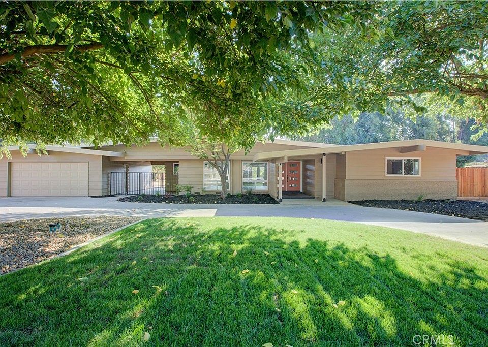 Custom Built Contemporary Style Home with Pool and 2 car detached Garage in a Picturesque Neighborhood. Boasting an open floor plan with high ceilings, this home offers the perfect blend of modern and contemporary design that is sure to impress. Featuring 4 bedrooms, 2.25 bathrooms and 2,227 sq ft of living space. Upon entering, you will immediately notice the circular driveway and landscaped front yard. The living room features an open floor plan and beamed and vaulted ceilings, providing a sense of grandeur. The French doors leading to the backyard allow for an abundance of natural light, making the space feel bright and airy. The remodeled kitchen features quartz countertops, a breakfast bar, an island, cathedral-vaulted ceilings, and a pantry closet for all of your cooking essentials. The kitchen also includes premium appliances such as a dishwasher, disposal, built-in oven, and a gas range. As you move through the home, you will encounter the bedrooms, which have carpeted flooring, high ceilings, and 2 rooms with built-in drawers. The master room has a spacious walk-in closet. The laundry room is an added bonus, making washing and drying clothes convenient and easy. The backyard is perfect for entertaining guests or relaxing with family, thanks to the built-in gunite pool. Solar owned and security cameras on property. With so many desirable features, this property is a must-see, don't miss out on the opportunity to own this beautiful custom contemporary style home. Contact us today to schedule your private showing. (Some Images have been virtually staged.)