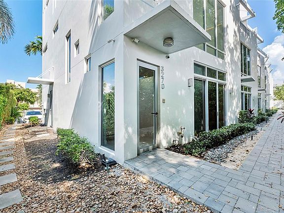 Totally updated 4-story townhome in Palm Cove Lofts featuring 3 bedrooms and 3.5 baths. Walking distance to the beach, water taxi and intracoastal. All impact windows and doors. The first level offers a private bedroom suite and elevator access to all floors. The second floor showcases a spacious living area and chef's kitchen with 6 gas burners, large center island, abundant cabinets, double wine fridge, laundry room, and half bath. The third floor includes the luxurious primary suite with a walk-in closet, roman tub, and separate shower, plus an additional bedroom suite. Enjoy the rooftop oasis with a summer kitchen and hot tub perfect for entertaining or relaxing under the stars. Total upscale living in this private gated community.