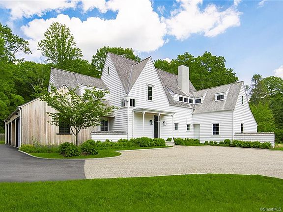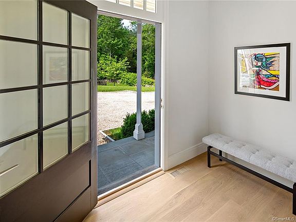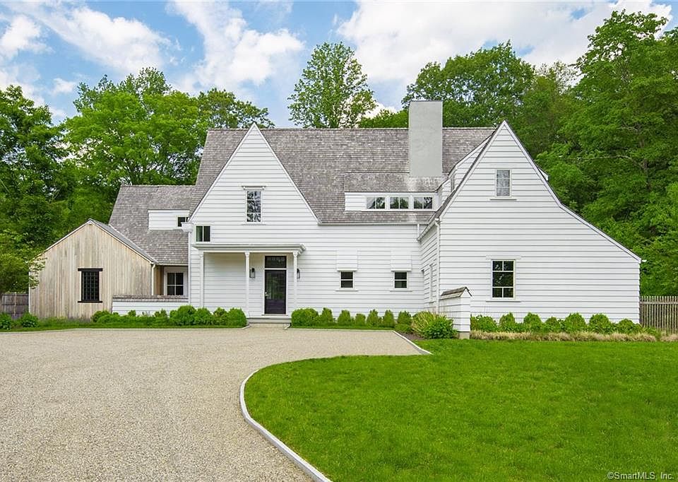 New sleek modern farmhouse custom designed by award-winning architects Vicente-Burin, is majestically sited on 2+ private, architecturally landscaped acres; just minutes to the Westport train station and from exit 42 of the Merritt. Soaring 11 ceilings include thoughtful architectural details. Natural stone, white oak floors, Marvin windows and high-end materials are featured throughout. Floor-to-ceiling windows invite the outdoors in, filling the home with brilliant natural light. A seamless flow between the gourmet kitchen, sun-drenched dining room and family room with 20+ ceilings form an open and airy space perfect for entertaining. Unwind in the master suite with a gas fireplace, balcony and spa bath, creating a serene oasis. A three-car garage and room for a pool complete your modern retreat.