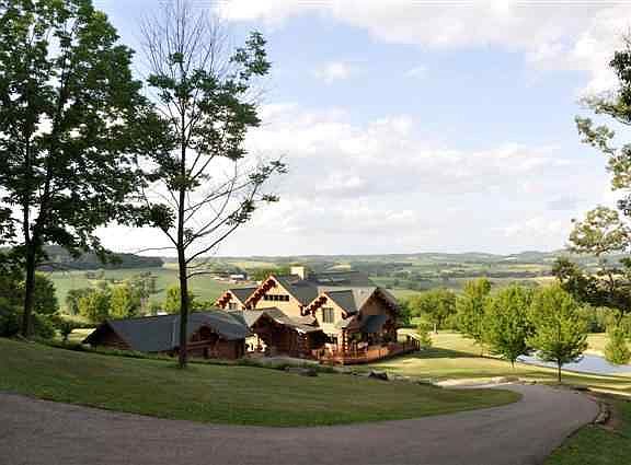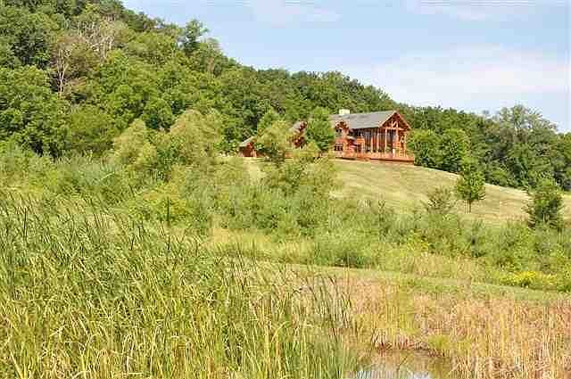 (kb41) (js48) The views on this spectacular 44-acre property are as phenomenal as the magnificent log home that comes with it. Located between Galena & Elizabeth the home is accessed from a paved, long & winding driveway making it extremely private. There are two stocked ponds and 34 acres in a forestry management program. Quality materials are found throughout incl. custom made cabinetry, specialty lighting, copper bowl sinks & Belle Foret faucets, travertine stone farm kitchen sink, and Wolf pro series gas 6-burner stove to name just a few. The main floor master suite has its own fireplace, pond views, double sinks, walk-in shower, hydro spa and a walk-through closet to the laundry area. The great room features a double-sided limestone fireplace, wide plank barn wood floors, vaulted ceiling with skylights and access to the covered porch with 25' high log columns with limestone foundation and wrap-around porch and lots of windows to enjoy the best views in the county.