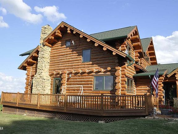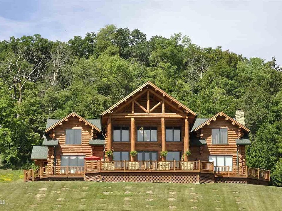 REDUCED! This magnificent custom executive full log home on 40 acres MOL located between Galena and Elizabeth offers spectacular views the best of which picturesque Jo Daviess County is known for. Two large stocked ponds (one of which is 30 feet deep), a pine and oak tree forest consisting of 4000 mature trees and irrigated garden beds are just a few of the unlimited features this property offers. The custom 4813 square foot Maple Island Log Home boasts attention to detail with high end finishes throughout including Eagle windows from which to enjoy breathtaking views. The main floor includes a massive great room featuring a double-sided limestone fireplace with vaulted ceiling and skylights plus recently refinished wide blank barn wood floors. The chefs kitchen has an abundance of custom barn wood cabinetry with granite countertops, top of the line appliances including a Wolf Pro Series 6 burner gas stove, a travertine stone farm kitchen sink plus a large walk-in pantry. The Master Suite has its own fireplace, private country views and a recently remodeled luxury bathroom complete with oversized tile shower and soaking tub. The covered deck has 25 foot log columns with limestone foundations and surrounds the home on 3 sides. There are 2 stairways leading to both sides of the upper level each with 2 bedroom suites that have large full baths with copper bowl sinks and Belle Forest faucets. The lower level features a massive geothermal system and foam insulation on all exterior walls. The 20 KW solar array with SolarWorld modules and Emphase microinverters make this home virtually energy neutral for most of the year. There is a matching detached oversized 3 stall garage with a covered entry portico to complete this must see property.