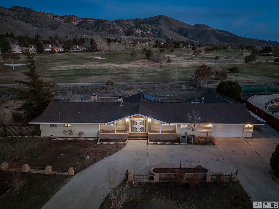 Premier lot location on the Hidden Valley Golf Course! This single story home is located on the 2nd tee box with beautiful views of the course and foothills, along with the downtown skyline from the front yard. The home includes a FULLY OWNED roof mounted 10.4 kw/h solar system. There is a small carport and RV parking. The great room is highlighted by the vaulted ceilings, wood beams, wood burning fireplace and the floor-to-ceiling windows looking directly out to the golf course., Notable features: the master bedroom has a wood burning fireplace, there is a large sunroom, there are 2 AC units, 2 gas furnaces and 2 gas water heaters, over-sized garage, central vacuum system and the home does not require flood insurance.