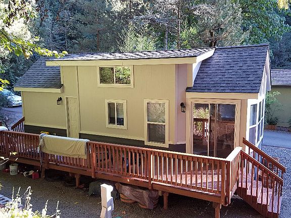 Perfect "Tiny Home" in the woods. 2016 Fleetwood McKenzie Park Model. 1 bedroom, 1 bathroom, 391 sq. ft. on main level and a 200 sq. ft. loft. Comes with all applicances including dishwasher and stackable washer & dryer. 42" TV's in bedroom and living room plus surround sound in living room. Space rent/HOA include water, sewer and garbage. Has a 10x12 Tuff Shed w/ loft. Beautifully landscaped with new plants, pots, flower beds and pots have a watering system, and a brick wall boarding the back yard with cedar fencing, overlooking a small spring/pond. Very secluded and quiet in Creekside RV in Big Valley Woods RV park all move in ready.