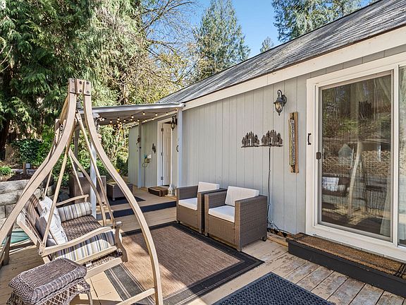 Welcome to your serene waterfront retreat! This stunning manufactured home boasts vaulted ceilings and an open floor plan that welcomes you to relax and unwind. With ample natural light and the peaceful sounds of the creek just steps away, you'll feel right at home in this tranquil oasis. This home is on one of the best lots in the entire park! Before this was a manufactured home park the past owner of this property chose this lot to put their home on. Step outside onto the wraparound deck, where you can take in the breathtaking views of the water and surrounding forest. This idyllic setting provides the perfect backdrop for entertaining, dining al fresco, or simply enjoying a quiet moment in nature.Inside, the spacious kitchen has plenty of counter space, making it a joy to cook and entertain in. The flooring and water heater have also been replaced within the last year. Outside, there are three A-frame sheds for storage. Whether you're looking for a year-round residence or a weekend getaway, this property has it all. Don't miss your chance to own this stunning waterfront home surrounded by nature's beauty.