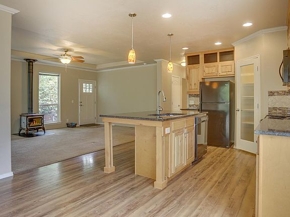 Beautiful home nestled in the trees in Big Valley Woods. This home has high ceilings, open kitchen with tons of storage, 2 bedrooms + a flex space, large utility room, and a wood stove to keep things cozy in the winter. The covered deck overlooks the forest and your own year-round private oasis with a fire pit, pond, and gorgeous landscaping. Come and see this home today!