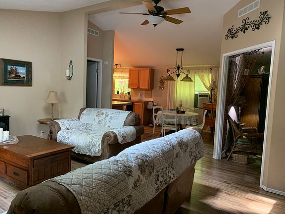 Newly added huge deck. Flower beds just added. A shop sits on the property. Covered car port with a tool shed. Very desirable location. Manufactures home for SALE....with LAND LEASE ON THIS PROPERTY Well maintained home in Big Valley Woods which is one of a kind park! This home is on a huge lot with tons of parking. An Over sized garage, Carport and an addition parking spot on the side. Carport will fit two cars, and more space behind for guests. Large home with three bedrooms and a den, open and spacious kitchen with separate dinning room, new skylights, and plenty of cupboard space for all kitchen needs. Large family room with windows that bring in plenty of sunshine into your home. All bedrooms are large sized with lots of space for storage. Out your back door you have a long deck that opens onto your beautiful outdoor bar, where you will enjoy endless summer nights entertaining family and friends. There is a large shed under the carport for additional storage. This space is beautiful and very well maintained. It is inviting and feels like home when you walk in. This home is 1352 sq ft. Which offers much space for a large family. This park also offers club house, basketball court, ponds, creek and more. It is a piece of paradise out in the woods away from all the hustle and bustle of the city. You will enjoy hours in a peaceful serene setting that will be yours for years to come. Space rent is $840 per month, includes water, sewer and garbage! Buyers to take on resale compliance from the park and replace roof.