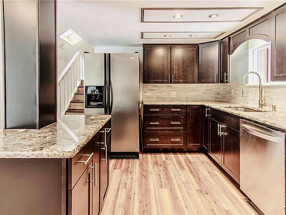 Inside, the recently remodeled kitchen shines with an abundance of cabinetry, modern appliances, and stunning quartz countertops. The warm and inviting living space is complemented by a wood stove, perfect for cozy winter gatherings. Step outside to enjoy the peaceful setting on your front deck, screened-in porch, or balcony—ideal spaces to take in the views and fresh country air.