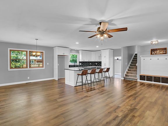 This amazing 4 bedroom, 3 bath home has been recently remodeled throughout and is ready to move in and enjoy. Offering a great room and lower level living room with fireplace. 2.5 car attached garage. Open concept main level (kitchen, dining, great room combo) Kitchen remodel 2024-2025 with Kraftmaid white cabinets, pantry, utensil cabinet, pull out pan storage drawer and many upgraded features. Granite countertops. Large center island breakfast bar prep area. Tile Backsplash. Gas oven range (electric plug connection for electric stove if preferred) Dishwasher. Kitchen window replaced during remodel. Washer/Dryer. Whole house Water softener. Under sink reverse osmosis water purifier. Exterior & Interior paint. Shutters. Interior Doors; bedrooms/closets/bathrooms. Exterior back doors. Master bath with addition of a beautiful walk in tile shower. All 3 Bathrooms updated. Lighted Bluetooth exhaust fans in 2 bathrooms. Light fixtures, recessed lights, ceiling fans, outlets/plugs/covers throughout. Drywall & Insulation on main and lower levels with wall vapor barrier. All flooring throughout the entire house. Aquaguard luxury laminate waterproof flooring. Carpet. Water heater. All hardware including; doorknobs, door hinges, cabinet pulls, faucets, etc. Nest programmable thermostat. Window blinds. Sewer line to house updated with PVC pipe. Exterior attic access added for main level attic (Also has garage stairway attic access) Large fenced back yard 94x132 lot. Storage shed.