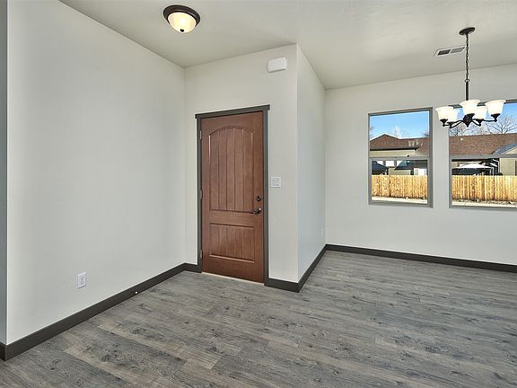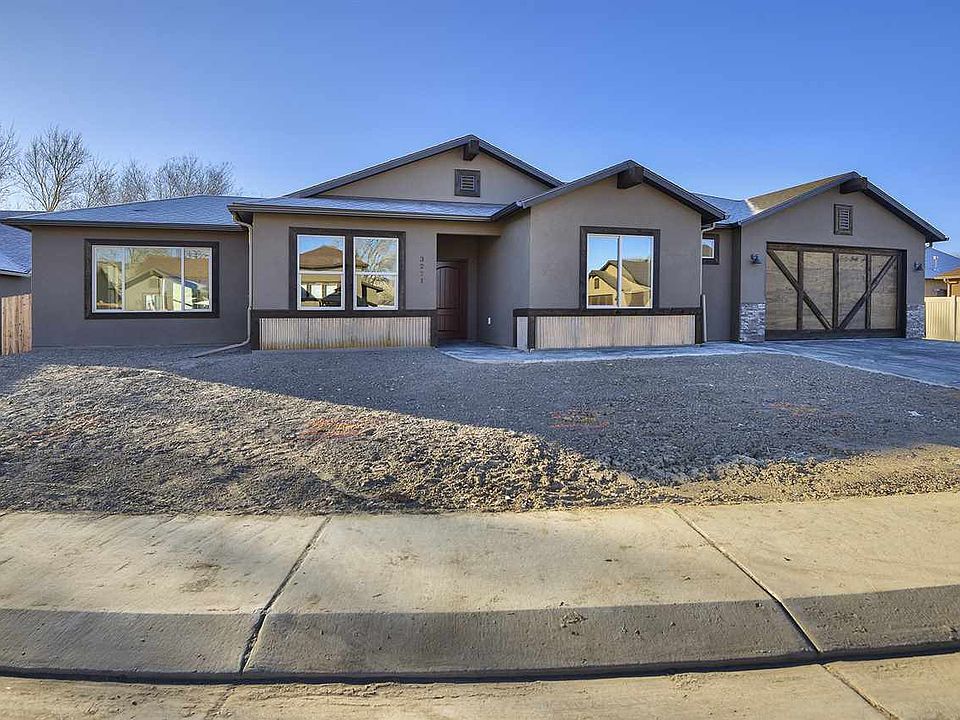 With an open-concept design and picturesque views out the windows of the main living space, this newly constructed home offers exquisite finishes along with rustic accents. Wood and metal accents combine to create a unique look. From the front entrance, step inside the spacious great room centered by an extensive kitchen island with granite counters. Bathed in natural sunlight from all angles, this space offers oversized sliding glass doors leading out to the outdoor patio and fully-fenced backyard. The home's master suite is accentuated by a luxurious en-suite featuring a tiled walk-in shower and double-sink vanity. Situated next to the home's main full bathroom with a tiled bathtub surround are two graciously-sized bedrooms. Dark cherry cabinetry, rustic wood laminate flooring, and dark trim are just a few of the thoughtfully placed details in this beautiful home.