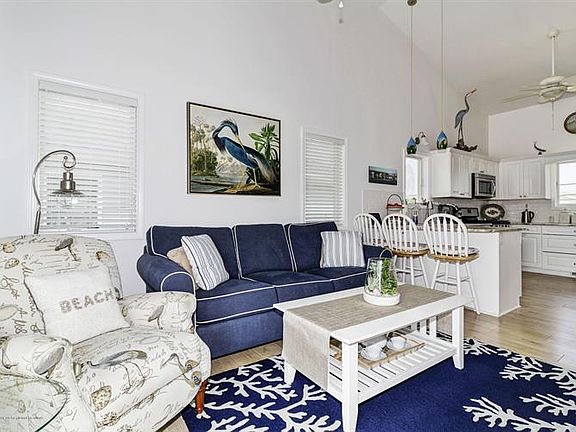 Enjoy brilliant sunsets and so much more from this 5 yr young home offering 3 bedrooms, 2 baths, generous loft space with storage, high ceilings and a ventless gas fireplace for those chilly fall winter nights. The kitchen is perfection with fantasy brown leather quartzite counter tops with subway tile backsplash. Windows and slider are Anderson Silverline and the deck has a retractable awining and speakers. Some bayviews can be seen from deck, mature landscaping and plantings border the yard with stone patio and hot tub. Plumbing in place for outdoor shower. Outside lift from ground level, ample off street parking (5 6 cars). Living and entertaining will be a joy from this pristine, well maintained home in the lovely community of Ocean Beach 3. Bay beach and clubhouse. THIS IS OWNED LAND!