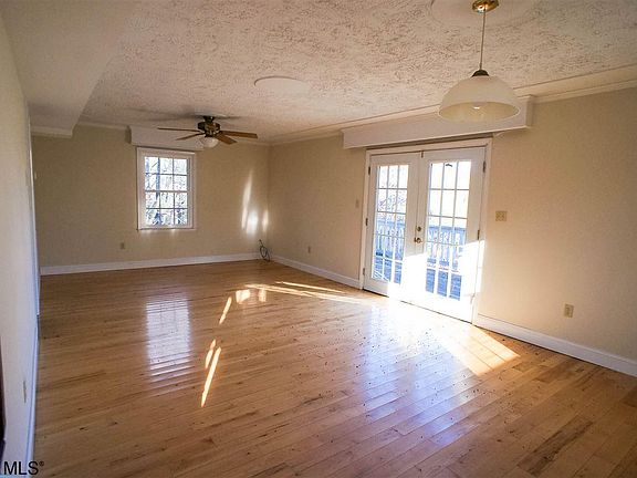 Great opportunity for first time home buyers. Charming home on 2+ acres. Plenty of garden space and rural views. Large front porch wraps around to deck in back. Kitchen boasts county charm with dark wood cabinets and hardwood floors. Appliances included! Gather friends and family in the open living room - french doors lead to large back deck. Ceiling fans throughout, plenty of windows, partially finished basement gives you even more room to expand.