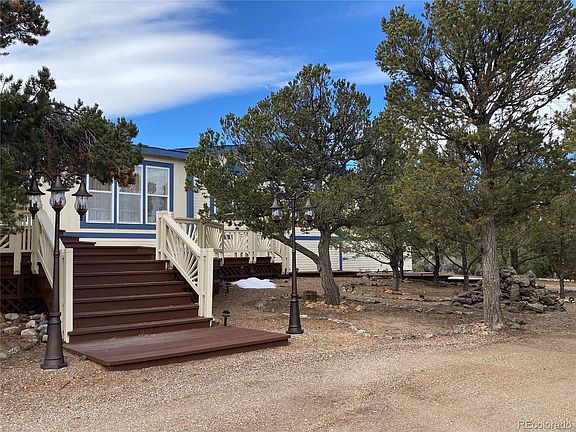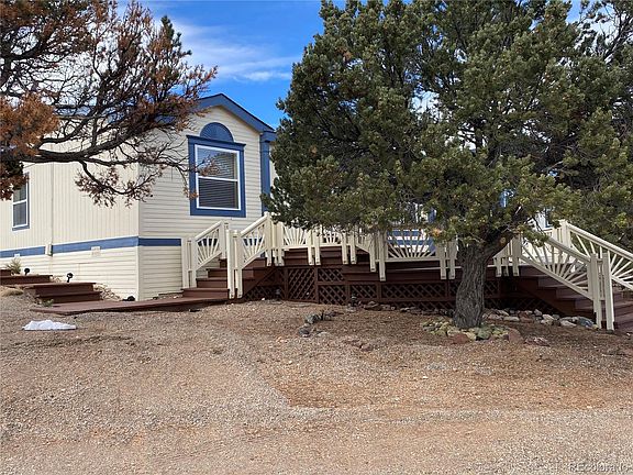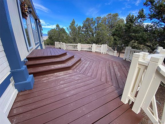 Very well kept home on 5.2 acres of groomed property at the end of a cul de sac. Property is completely wooded with big pinion pine and cedar trees that are are groomed and the ground is cleaned up. Awesome views of the Mt Blanca and Mt Lindsey range. This spacious house is in immaculate condition. Has granite countertops through out kitchen and bathrooms, stainless steel appliances included. 2 garages. one garage is 2 1/2 car with a work shop area plus an upstairs bonus room. Second garage is 1 1/2 car with over sized door. There is a huge deck on the front of the house and wooden walkways in the back with landscaping done with outside seating area. This 3 bed 2 1/2 bath home would be a great retirement home or a great home for the growing family with plenty of outdoor area to explore with a trail made through it. If you are thinking of moving to this area you must see this house, it super clean and neat. This property is less than 5 minutes to the Mountain Home State Park and Reservoir for great water fun like fishing and boating.