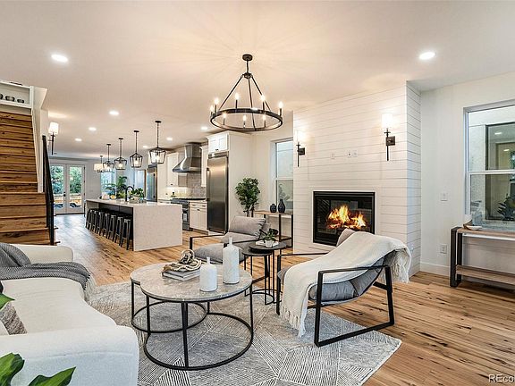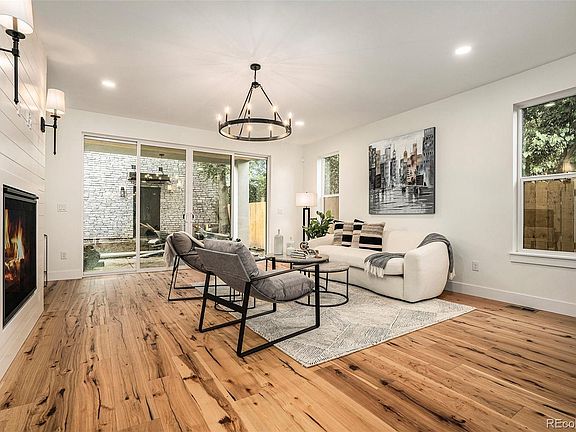 Amazing custom-built Modern home in perfect Highlands location. Steps to the shops and restaurants on 32nd, with easy access to Sloan's Lake. This well-thought-out home is sure to impress, with every square foot creatively used. Enjoy the open first floor plan with hickory floors centered around a chef’s kitchen, anchored by an oversized island, quartz countertops, 48" dual fuel range, and matching built-in refrigerator & freezer. The focus of the living room is the 42" gas fireplace with shiplap surround and oversized glass sliding doors leading to the backyard. Don't miss the mudroom that provides ample storage for coats, shoes etc. The upstairs has 14' vaulted ceilings, hickory floors, 3 bedrooms, 2 bathrooms, and a laundry room. The luxurious primary suite flaunts a large balcony, fireplace, soaker tub, walk-in shower, and two closets. The carpeted basement includes a large living room, kitchenette, two bedrooms, dual-sink bathroom, and laundry. This basement boasts tall 9’ ceilings and XL egress windows. The backyard has a covered patio, a gas line for a grill, and a detached 2 car garage. Professional landscaping coming soon. Call today to schedule a showing!