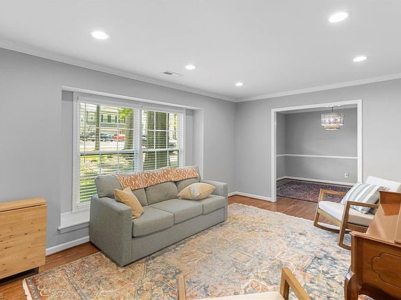 Absolutely adorable 3 bedroom, 2 bath brick ranch beautifully updated throughout. Step into a spacious living room adjacent to a flex room that could be office or formal dining room. The kitchen affords recent white cabinets with amazing waterfall effect granite, SS appliances, vent hood, pantry and lovely tile. The laundry room is just steps away. Open to the kitchen you will find the den with fireplace. The primary bedroom has a walk-in closet and beautifully updated bath with solid surface counter & tile shower. Two additional bedrooms share the updated hall bath. Beautiful hardwood floors and tile throughout the home. Great deck overlooks a fenced backyard, plus great storage in the crawl space. All conveniently located nears schools, shopping & highway.