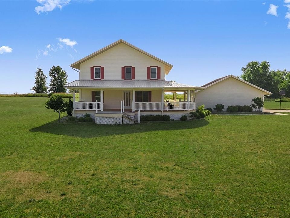 Charming home with a rural setting on 10 acres with an Ann Arbor Mailing address, Freedom Twp taxes, and within Chelsea Schools. Built in 2004 to honor the quintessential farmhouse aesthetic this home has 2,048 sqft with 6 bedrooms and 2 bathrooms featuring an open floor plan with hardwoods throughout the main level. The home features a charming living room and a spacious dine-in kitchen with abundant cabinet and counterspace, stainless steel appliances, quartz backsplash, butcher block counters. The main floor includes 2 bedrooms and 1 full bathroom and upstairs are 4 additional bedrooms and a 2nd full bathroom. The partially finished lower level could easily be finished to add additional living space with a potential living area and egress bedroom/office, plus ample storage and laundry space. The stunning covered porch wraps around three sides of the home and makes a tranquil place to enjoy the outdoors, with picturesque views of the surrounding property, perfect for observing wildlife and watching sunsets. Additional highlights include the detached 3-car garage with higher ceilings and ample space for a workshop, energy efficient with metal roof, geothermal heating/cooling.