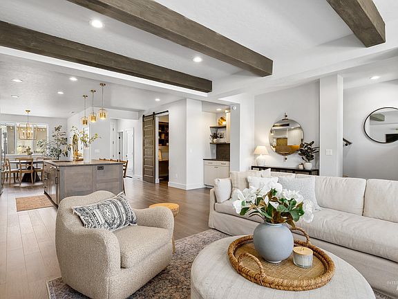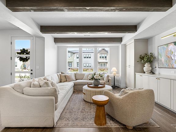 Contemporary design blends harmoniously with chic styling in this low-maintenance masterpiece centrally located near the best East Boise amenities including a community pool, dining, shopping and outdoor recreation! Boasting unique architectural details and stunning interior design, the living space exudes luxury, comfort and poise. Step inside to a gracious living room bathed with natural light and warm engineered wood flooring that flows seamlessly through the main level to an entertainer's kitchen with a sprawling island, 6 burner gas range, leathered quartz counters and a built-in bar/coffee nook. Access to the private exterior courtyard is designed to extend livability outdoors and offers ample space for seasonal gatherings. Second level hosts a lavish master retreat featuring a spa-like ensuite with dual vanities and tiled walk-in shower. Two additional bedrooms and dedicated tech nook blend flair and function in a layout designed for maximum efficiency. Fully insulated garage offers extra workspace.