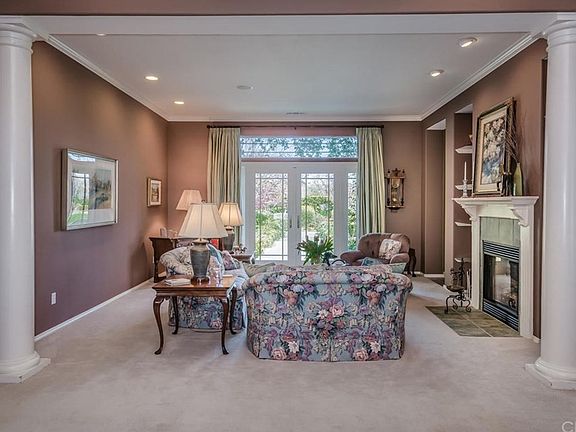 Come home and relax in your own paradise. This stunning French colonial style, 5-bedroom, 4 baths home has everything you are looking for , inside and out! As you enter the foyer with its impressive 12 ft ceilings you are invited by pillars to the elegant living room, with a gas burning fireplace, custom built-in glass bookcases, crown moldings and French doors that bring in the colors and serenity of the immaculate designed backyard. This spacious home with its open floor plan is perfect for entertaining friends and family. The beautiful gourmet kitchen with stainless steel appliances, a double oven and a huge breakfast counter with granite top opens into a cozy breakfast nook and family room, with lots of room to gather around the wood burning fireplace ,or open the French doors to the park- like backyard with a barbeque island and a serving island and gather on under the pergola, listening to your favorite music coming from the speakers installed on both patios. The music lover in you will appreciate the surround sound in the family room, living room, and in the large master suite.