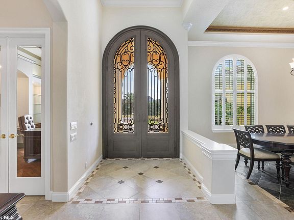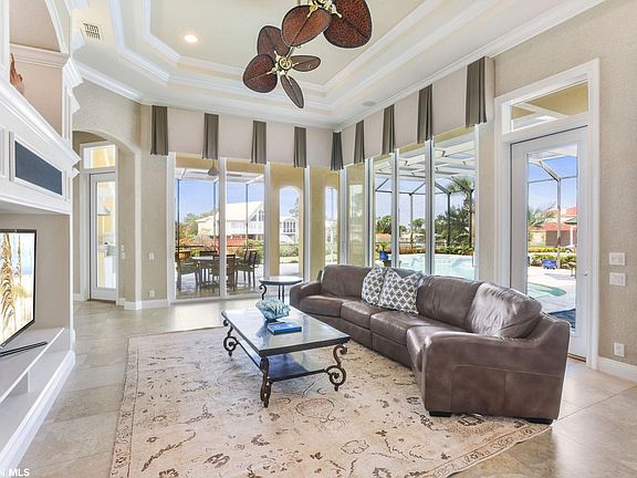 Welcome to this Mediterranean style, Arthur Rutenberg designed home with a spacious open floor plan and gorgeous detailed 16 foot ceilings. This 4100 sqft home features 4 bedrooms, 3 ½ bathrooms, porcelain tile floors and plantation shutters throughout. It also features a spacious office, 3-car garage, climate-controlled storage room, and a rec-room with top of the line gym equipment to convey with the house. The gourmet kitchen includes all stainless-steel appliances, oversized island with a prep sink, and under & over lighting in cabinets. The wet bar features a built in ice maker and drink cooler. Master bedroom/bathroom features his & her vanities with sitting area, jetted soaker tub, walk-in dual shower, his & her closets with built-in storage, and access to covered back patio. Enjoy your screened in outdoor back patio featuring an outdoor kitchen with a built-in 30-inch stainless-steel Wilmington grill, gas fireplace, and heated pool with spill-over spa. The boat house includes 16,000 lb boat lift, adjustable Jet Ski lift, and stainless-steel cleaning station. Home is equipped with Simonton Storm Breaker Plus impact glass on front and back, Therma-Tru impact glass doors on rear of house, Crimsafe screens on side windows, PGT impact/insulated sliding doors, and a motorized Storm Secure Rolling Shutter protecting front door. A new stone coated steel roof was put on the house and boat house in 2021. New whole house 20 KW Cummins Propane Generator with Transfer Switch installed in July 2020. Home sits in Flood Zone X and has never flooded. *Pre-recorded walkthrough videos available upon request.* *The home is partially staged. Staged items will NOT convey with sale unless specifically purchased outside of contract with stager. * **Available upon request - full list of home features, upgrades and furniture to convey!**