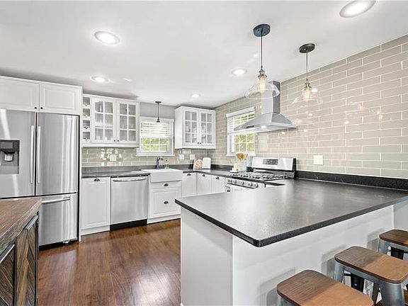 Beautiful, updated home on a quiet street. Tons of parking provided by the two car attached and one car integral garages along with the sizeable driveway. Hardwood floors throughout. The open concept kitchen and dining features granite countertops, stainless steel appliances, recessed lighting and a subway tile backsplash. The natural light streams into the living room, which boasts an electric fireplace and built-in storage, from the french doors leading to the back deck. The half bath off the living room has a sliding barn door for touch of modern flair. Upstairs you'll find three bedrooms and the full bathroom that includes a subway tile bath/shower surround. Newer mechanicals. All that's left to do is move in and enjoy!