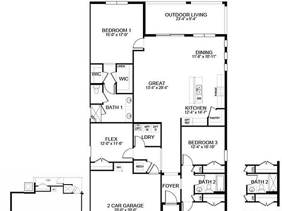 Brand New! This innovative, new construction home features a highly-desired, open-concept design. A double-sliding glass door and a multitude of windows fill the kitchen, great room and dining area with the Florida sunshine. The island kitchen is ideally situated at the heart of the home, between the dining and great room, making entertaining family and friends a breeze. The modernly-designed kitchen offers an optimal amount of cabinets and counter space and features a walk-in pantry. A generous-sized, paved and covered lanai allows homeowners to enjoy the outdoors all year round. Located at the back of the home, the well-appointed primary suite comfortably fits a king-size bed set and features two walk-in closets, dual vanity, a desirable walk-in shower, and a private water closet. Opposite the primary suite, at the front of the home, two guest bedrooms share a guest bath. This home also features a versatile flex room with a closet that can be utilized as an office, den, or even a fourth bedroom. A Laundry room and two-car garage complete this home.