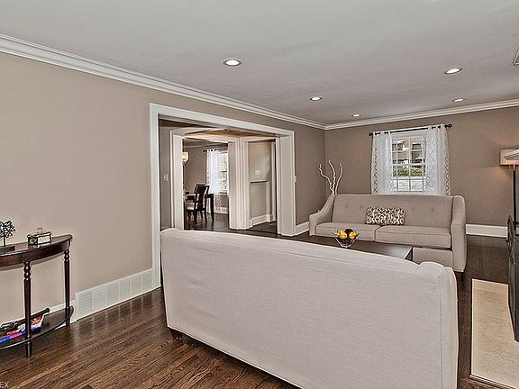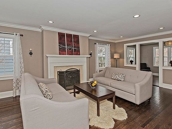Move right into this beautiful renovation complete with lovely finishes and elegant fixtures throughout. This center hall colonial offers a terrific layout and flow with warm hardwood floors, neutral colors, and fine details. The spacious living room is great for formal entertaining or relaxing with an original fireplace and cutouts opening up to a family room. The heart of this home is the stunning kitchen showcasing antique glazed cabinets, stainless steel appliances, gorgeous granite counters, tile backsplash, as well as a breakfast bar. Upstairs, your own private retreat awaits you in the master suite featuring his/her closets and a striking master bathroom with double sinks and a glass walk-in shower. Two more bedrooms and a hall bathroom can be found on the second floor. The third level offers an additional living suite complete with a fourth bedroom, full bathroom, and a bonus room. The lower level offers an expansive recreation room, laundry/utility room, as well as another bonus room that would make a great play area. Outside, enjoy the warmer Cleveland months on the patio in the fenced-in yard. Updated to todays standards at a great price, this gem is waiting for a new owner!