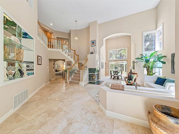 Designed with elegance and grandeur in mind, this pride-of-ownership home is unlike any other. It's a welcome retreat for those seeking a hideaway from the bustle of the city to the tranquility of natural surroundings. You'll love the Mediterranean style of this home--featuring rock-veneer décor and a towering arch leading up to the front door. Experience a splendid floor plan--boasting an expansive foyer, a sweeping staircase, stunning two-story-high ceilings, a warming fireplace in the formal living room, and large stacked windows that bring the outdoors inside. The openness of the expansive family room to the kitchen will be the hub of this house. Features in the family room include crown molding, a refaced fireplace, tile floors--expanding into the kitchen and lower hall--and windows across the rear wing that overlook the backyard. The kitchen has granite countertops and a breakfast nook. The matured landscaping in the backyard serves as a privacy shield to the master suite. Suite-style amenities include a lounge area, a large walk-in closet, and a bath with a separate tub and shower. The home's 2,891 square feet are thoughtfully spread out and include a bedroom with a full bath downstairs and a flex/bonus room upstairs that will adjust to your lifestyle. A peaceful setting characterizes the surprisingly private and spacious backyard--presenting lush landscaping, a large aluminum patio, and an outdoor barbecue. This home is only 1 exit away from Orange County!