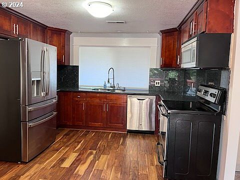 - Features: Dishwasher, Microwave, Free Standing Range, Free Standing Refrigerator, Wood Floors
