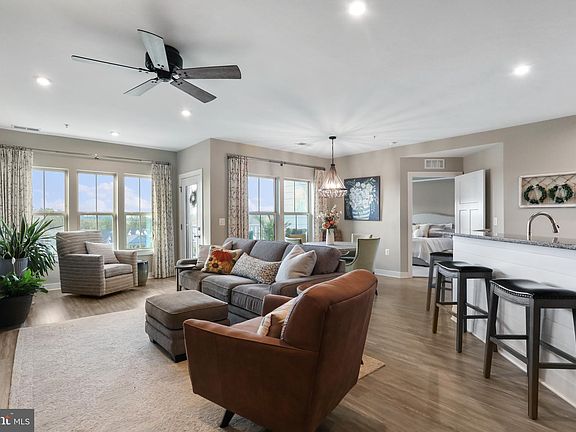 Welcome to the Woodlands! Frederick’s outstanding 55+ community. This gorgeous corner unit condo with 1517 square feet of high end finishes, has two large Bedrooms, two large Bathrooms and zero yard might just have the very best panoramic views of the woods and hills of any unit ...and, everything you need or want in a home. A lush scenic overlook from every window in every room you’ll have the feeling of living amongst nature without any exterior maintenance. A spacious open floor plan has lots of natural light; extra side windows in the Master Suite and a second bedroom situated on the opposite end of the home. The owner has installed new upgraded premium carpet in 2024, a new chandelier over the dining room table, new mirrors in the bathrooms, new screen door to the balcony, gorgeous new wainscoting on the kitchen island and wall in foyer! You will have privacy, splendor and unmatched views in this corner unit. What the Owner loves most are the views to woods and hills from the private covered porch and all of the windows, the sense of community, and the endless activities and amenities. Decorated in neutral colors, and new upgraded carpeting in 2024, this home is turnkey and perfectly proportioned. Enjoy a gourmet Kitchen with miles of granite countertops, custom tile backsplash, and upgraded Stainless Steel appliances. The warm toned luxury flooring, tiled bathrooms, tall creamy white cabinets and granite countertops are timeless. The owner had custom upgraded lighting fixtures installed. Soon you’ll be cozying up around the carefree gas fireplace watching the snow falling on the woodlands from your living room, or enjoying a cup of coffee in bed and those spectacular views. And, you never have to shovel snow again! A bonus room off the guestroom is a perfect space for an office, study , sewing room or reading room. And of course, the wooded and panoramic views from the bonus room are just as spectacular as the rest of the home. Both bathrooms are spacious and sport solid surface vanity tops and custom tile. This lovely home is just steps from the elevator, has a one gar garage with interior locked access, and plenty of guest parking. The Woodlands is full of social clubs, social events, athletic classes, walking trails, pickleball, tennis courts, gym, swimming pool, club house and so much more. The amenity photos showcase a fraction of what this community has to offer. Restaurants , retail , library, parks and all things Villages of Urbana Marketplace are just a quick 20 minute walk or even quicker drive; downtown Frederick is minutes away by car. If multiple Offers are received, then offers will be due Tuesday, October 29th at 12:00 PM. Seller requires occupancy until January 15, 2024(possibly sooner) Contact me (Mary Ratchford, REMAX) for a private tour or come to the Open House Saturday, October 26 from 1:00PM-3:00PM.