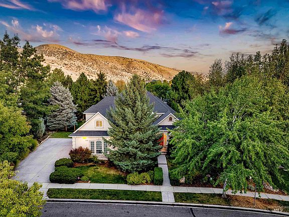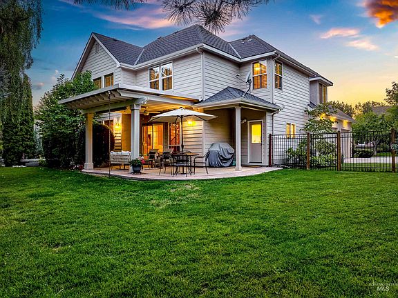 Nestled on a premiere, nearly 1/3 acre lot, in Boise’s coveted Harris Ranch, Spring Creek neighborhood, this former parade home epitomizes timeless beauty with captivating sunrise and sunset foothills views! The soaring entry ushers you into a grand great room featuring custom cabinetry, a cozy fireplace and 2-story windows allowing for abundant light. The gourmet kitchen boasts an expansive island and opens to a beautifully landscaped backyard with a covered patio. Retreat to the luxurious main-level primary suite with a soaker tub, tiled shower, and walk-in closet. The main-level also offers a home office and stylish dining room. Upstairs you’ll find three additional bedrooms, one with its own full bath, and a large bonus/flex room. Custom architectural details throughout- gorgeous millwork, coffered ceilings, gleaming hardwood floors and plantation shutters. Enjoy easy access to hiking and biking trails from your door. Two community clubhouses, fitness facilities and pools. No back neighbors!