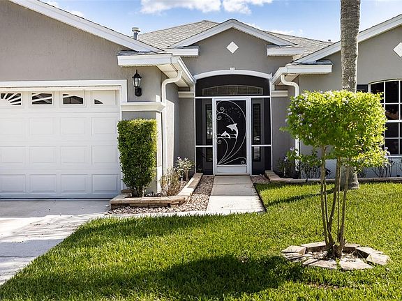 MULTIPLE OFFERS RECEIVED -HIGHEST AND BEST 4:30 10/14/21. Waterfront living at its best! Located in the desirable gated community of Carillon Lakes this home offers spectacular lake views from your own private pool deck. Relax in this 3 bedroom 2 bath waterfront pool home. The open floor and split bedroom plan. The large great room has sliding doors that over look the pool and water views; it also enjoys high ceilings and beautiful laminate floors. The spacious kitchen offers endless granite counters, a breakfast bar that overlooks the great room as well as a breakfast nook with sliding doors to the pool. The newly stained pool deck offers a covered patio, perfect for morning coffee, watching the sunrise and abundant wildlife. A master bedroom also enjoys water views and boasts 2 walk in closets with an en-suite bathroom. The master bath has a garden tub, separate shower stall and double sinks. Bedroom 2 has a large window overlooking the front garden that lets in lots of light and has a big closet and new carpet. Bedroom 3 is currently used as an office but has two closets, a large window and lovely laminate floors. The home has been freshly painted inside and out. The gated community offers a clubhouse, pool, security, tennis and pickle ball courts, playground, as well as nature walks trails and much more. Make your appointment today to see your new home.