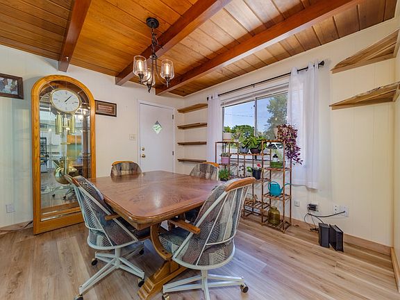 Charming Cottage with White Picket Fence - Almost Fully Remodeled! Welcome to this adorable 2 bedroom ranch, nestled behind a charming white picket fence. This home has undergone extensive remodeling, featuring brand new flooring and a completely updated bathroom, along with a newer kitchen, furnace, and hot water heater. As cute as a button, this residence is sure to captivate you! And it's move in ready! Step inside to a bright and cheery living room that is bathed in natural light. The space boasts gorgeous wood ceilings with beams and a cozy gas fireplace, creating a warm and inviting atmosphere. The spacious, modern kitchen is perfect for culinary enthusiasts, complete with all appliances, including a washer and dryer, that are ready to stay. The backyard is a true oasis, offering a huge covered patio, gardens, and mature fruit trees and mature landscaping. The privacy fence ensures a tranquil retreat, and additional features include a chicken coop / dog run and a storage shed. For those who need extra space, the large garage comes with a separate workshop area, providing ample room for projects and storage. This charming cottage is priced to sell and ready for a quick sale. Don't miss out on this delightful property!