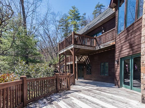 Outstanding, totally private, custom built 5,231 sq. ft. 4-bedroom 3.5 bath mountain home resting atop 9.78 acres with outstanding views of the Smokies. An extraordinarily rare find, this jewel of a home was thoughtfully designed and elegantly crafted using native materials to take advantage of the beautiful setting while remaining comfortably functional. The main floor features a large master bedroom and bathroom suite that opens onto the deck, an eat-in gourmet kitchen, cathedral-like great room featuring a stacked stone masonry fireplace among a wall of windows, half bath, laundry room and oversized two car garage. The upper level boasts a loft/library and second bedroom suite. The walkout basement rests on a poured concrete slab and features a massive game room, wet bar, 2 bedrooms, full bath, loads of outdoor space and extra storage. Quality materials include casement windows, hand laid native stone, hardwood flooring, granite tops, stainless steel appliances, excellent mill work, hand-made front door, poured concrete foundation walls-all in tip top condition. This end of the road location, gated entrance and boundary line along the Smoky Mountain national park virtually guarantees continued privacy. Southern views of Cove Mountain are also protected. Located in the heart of Wears Valley only a few miles from hiking trails, local restaurants while less than 30 minutes from McGee-Tyson airport make this an ideal location for year-around living, second home or vacation rental. The following are things that have been recently replaced or repaired: One of the three central air units, (2) hot water heaters, "Leaf Guard Gutters" for entire house, paved driveway plus additional cement driveway at top. All decks have been redone in 2021. (2) garage storage sheds, a carport for a boat or car, newer microwave and washer/dryer. Also, the entire outside of home has been recently stained. This home is completely protected with termite protection. Interior of home has recently been painted and all wood floors have been recently sanded and stained. Pool table and all equipment stays with sale. Rental Projection is $190k. Don't miss this one, it will not last!