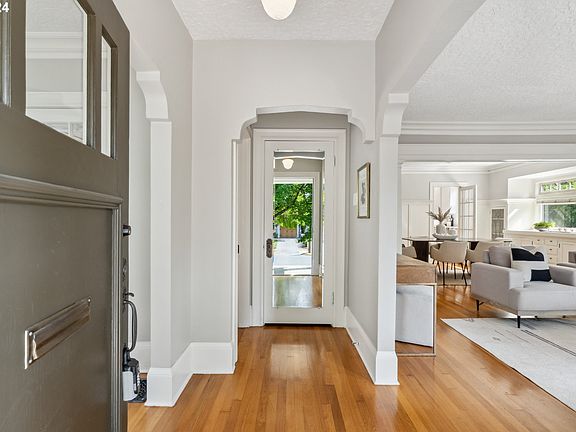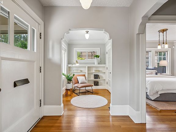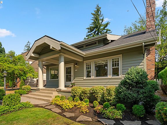 Stylish and Well Maintained Bungalow in Prime Alameda location. Light filled living room with gleaming hardwood floors, a gas fireplace and airy windows opens to formal dining room with transom window and built-in buffet. Lovely period details include: elegant sculpted plaster archways, leaded glass built-ins, timeless millwork. Renovated kitchen is roomy with quartz counters, stylish fixtures, and an eat-in breakfast bar. Two large bedrooms, a full bath and a cozy sitting room round out the gracious main floor. On the second floor you will find a huge primary suite with vaulted ceilings, skylights, an adjoining den/office, a bathroom with double sinks, and a large walk in closest. Lower level includes finished media/guest room with built-ins, a full bath, bonus room, and laundry room with storage galore. Back yard is a peaceful retreat, with a new central patio and a lush manicured garden. Nicely paved driveway leads to a functional one car detached garage. Furnace/AC replaced in 2020. Location can't be beat -- close to cherished schools and parks, Beaumont Village and Alberta Arts District. [Home Energy Score = 3. HES Report at https://rpt.greenbuildingregistry.com/hes/OR10231589]
