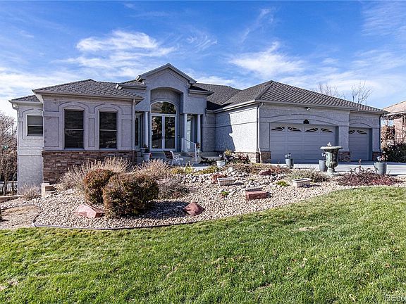 Discover your new lifestyle at this luxurious custom Plum Creek ranch home with spectacular mountain views and generously sized 1/3+ acre lot! Arrive at a beautifully landscaped yard on a quiet Cul-de-Sac! Step inside to a bright and open interior offering high quality updates and unexpected touches throughout--a grand entry, architectural details, extended Brazilian Cherrywood floors, vaulted Great Room with gas fireplace, Plantation shutters, walkout basement with great rec room/fireplace & wet bar, new pergola, new driveway 2020, radon mitigation system in place, to name a few. The homeowners have invested 160K in home improvements for every comfort and convenience! Relax by the warmth of the Great Room fireplace book in hand or retreat to the spacious main floor Primary suite fitted with 5-piece bath, dual showers and in-floor heating. The kitchen features slab Granite counters, Stainless Kitchen Aid appliances with the laundry conveniently located nearby. The finished walkout basement with 3 ample bedrooms, rec room, exercise area & full bath is a great space for inviting the company of family and friends. The backyard is a beauty with brand new pergola and composite deck, great for BBQs and parties. So many reasons you'll fall in love with this fantastic home!