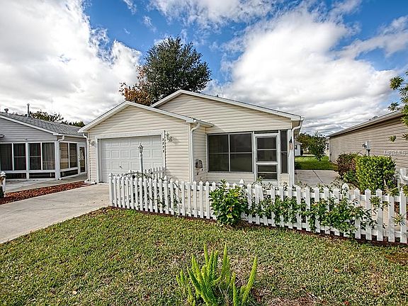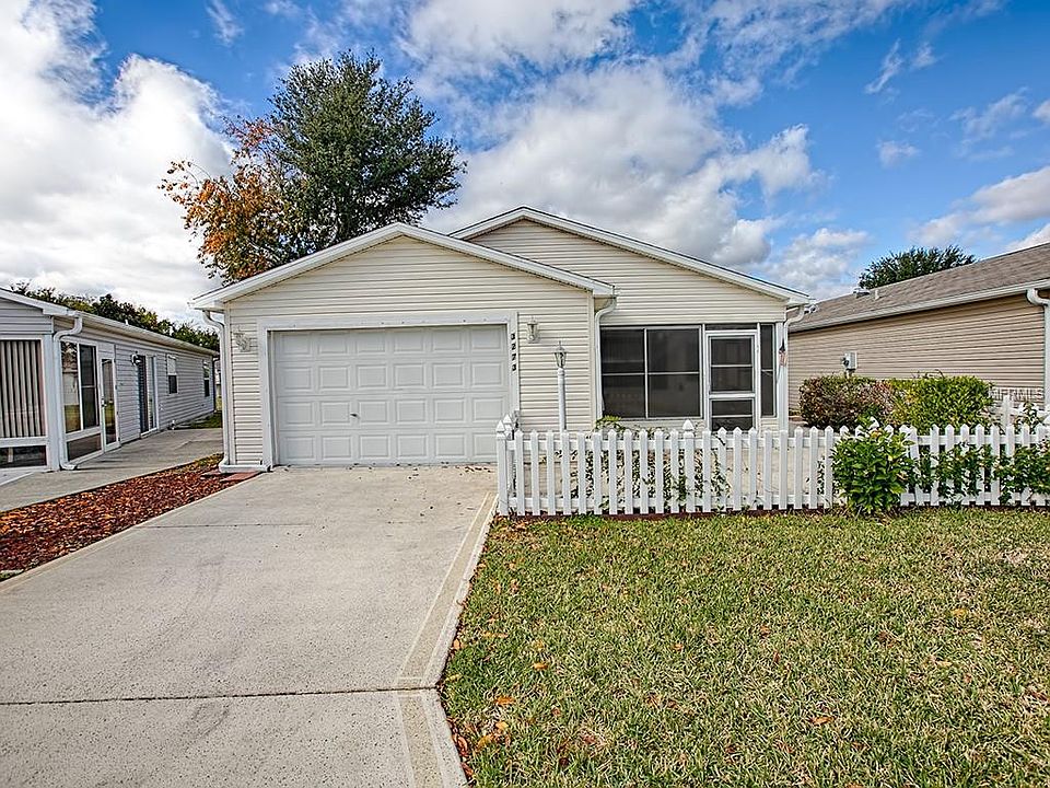 This centrally located Patio Villa is in The Village of Polo Ridge and has NO BOND. Pull up to your new home and you'll notice the painted driveway and spacious Car and a Half garage perfect for your car and golf cart. Like to entertain? There is plenty of extra parking right across the street. When you head into this lovely home you will see the ENCLOSED LANAI with TILE flooring which is perfect for sitting in no matter the temperature outside. Walk into your home and take a look at the spacious and open floor plan with NEW CARPET THROUGHOUT and in the kitchen you'll notice the EXTRA PANTRY storage which is unusual for a patio villa. This home is minutes from Lake Sumter Landing AND Spanish Springs, contact us to book your private showing today!!!