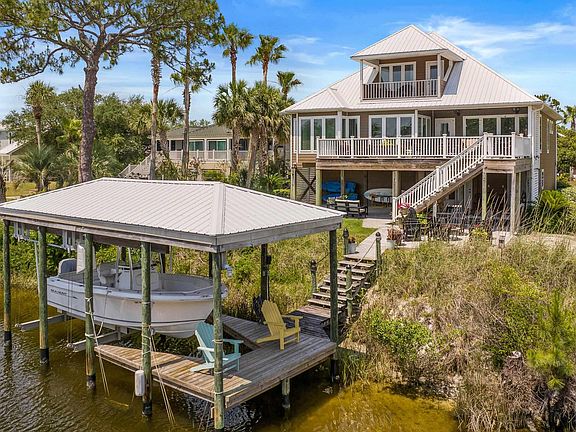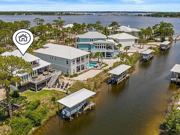 Welcome to coastal living on Ono Island! This well-maintained waterfront home boasts an open floor plan, abundant natural light, and expansive outdoor living space. There are multiple decks and patios that are ideal for sunset cocktails, weekend barbecues, or morning coffee. Situated near the entrance of the canal, this home offers stunning big water views and quick access to the intracoastal waterway. This beautiful home features stainless appliances with a dual-fuel range, a gas fireplace, impact windows and doors (2023), beautiful wood flooring on the main level, large primary suite on the main level with water views and multiple walk-in closets, a Fortified metal roof (2020), boat house with a 10,000 lb lift, irrigation, and so much more. Other recent updates include exterior stairs, rails and decking, a new paver patio and porch ceiling, interior paint, and HVAC. There is plenty of storage throughout the home, a huge 3-car garage with multiple storage rooms, and a half bath on the ground floor. Ono Island is a premier residential island community with a guarded entrance that provides privacy and security for its residents. Community amenities include a fitness center, indoor and outdoor pool, tennis and pickleball courts, playground, boat launch, 24-hour security, green spaces, and more! Come enjoy all that island life has to offer in this amazing property. Buyer to verify all information during due diligence.