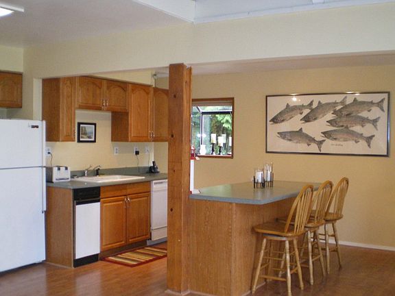 45' of No-Bank Lakefront home. 2 Bedroom 1.75 Bath, 1380 SqFt with beautiful view from the west end of Lake Cavanaugh. This home features a large kitchen and dining area open to the living room, large view windows and a large deck area for entertaining and relaxing. Two car garage and shop. Large dock that includes a shared agreement for use and maintainace. 1 Year American Homeshield coverage.